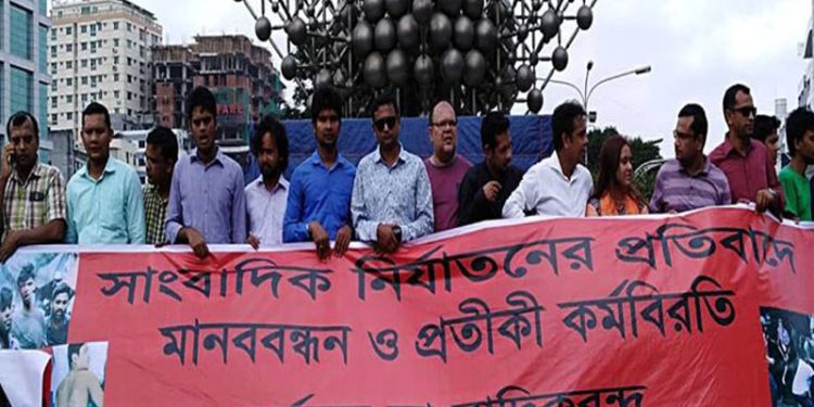 উল্লেখ্য, গত শনিবার ও রোববার রাজধানীর বিভিন্নস্থানে শিক্ষার্থীদের আন্দোলনের সংবাদ সংগ্রহের সময় পুলিশের উপস্থিতিতে হামলার শিকার হন সাংবাদিকরা। মানববন্ধনে উপস্থিত ছিলেন ক্রাইম রিপোর্টার্স অ্যাসোসিয়েশনের সাবেক সাধারণ সম্পাদক কামরুজ্জামান খান, বাংলাভিশনের সিনিয়র রিপোর্টার দীপন দেওয়ানসহ অন্য সাংবাদিক নেতৃবৃন্দ।