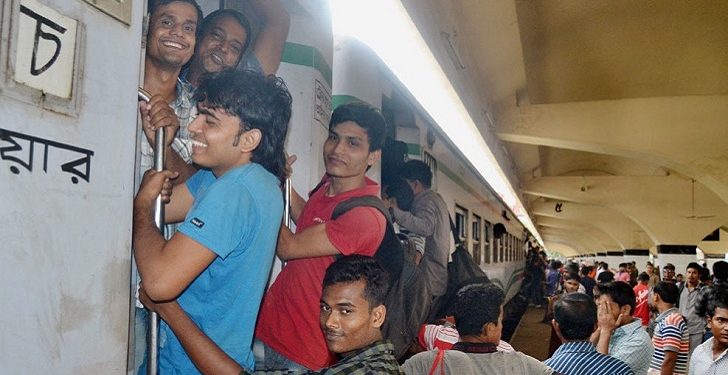 কমলাপুর স্টেশনে গিয়ে দেখা গেছে, অন্য দুদিনের চেয়ে আজ যাত্রীর সংখ্যা বেশি। যারা টিকিটে আসন পাননি, তারা ট্রেনের বগির ভেতরে দাঁড়িয়ে যাচ্ছেন অথবা উঠে পড়ছেন ছাদে।